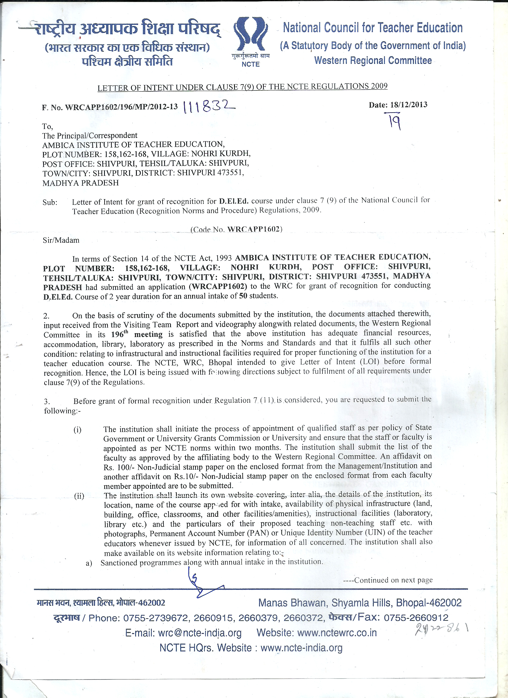 Regi. office : Ambika Samiti, 40, Gandhi Colony, Shivpuri(m.p) Mob 9425137120, Email – lokeshjain71@yahoo.com